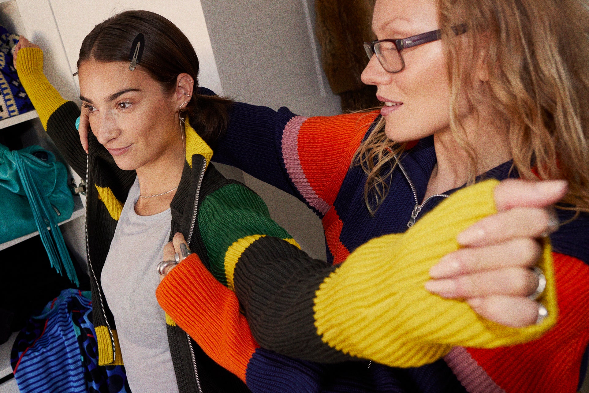 Manna and Xenia introduces the concept of SPORT into our Full-Zip silhouette, giving it a bold new identity through custom stripe compositions made from Andersen-Andersen’s signature yarn palette. The garment has also been re-engineered in length, offering a refreshed proportion that subtly nods to athletic wear, without compromising the label’s commitment to craftsmanship and timeless utility.